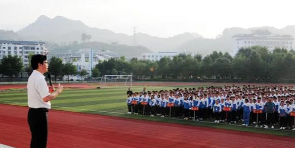 陈立群为台江县民族中学高三新生作动员讲话(2019年9月3日摄)。新华社记者 胡星 摄